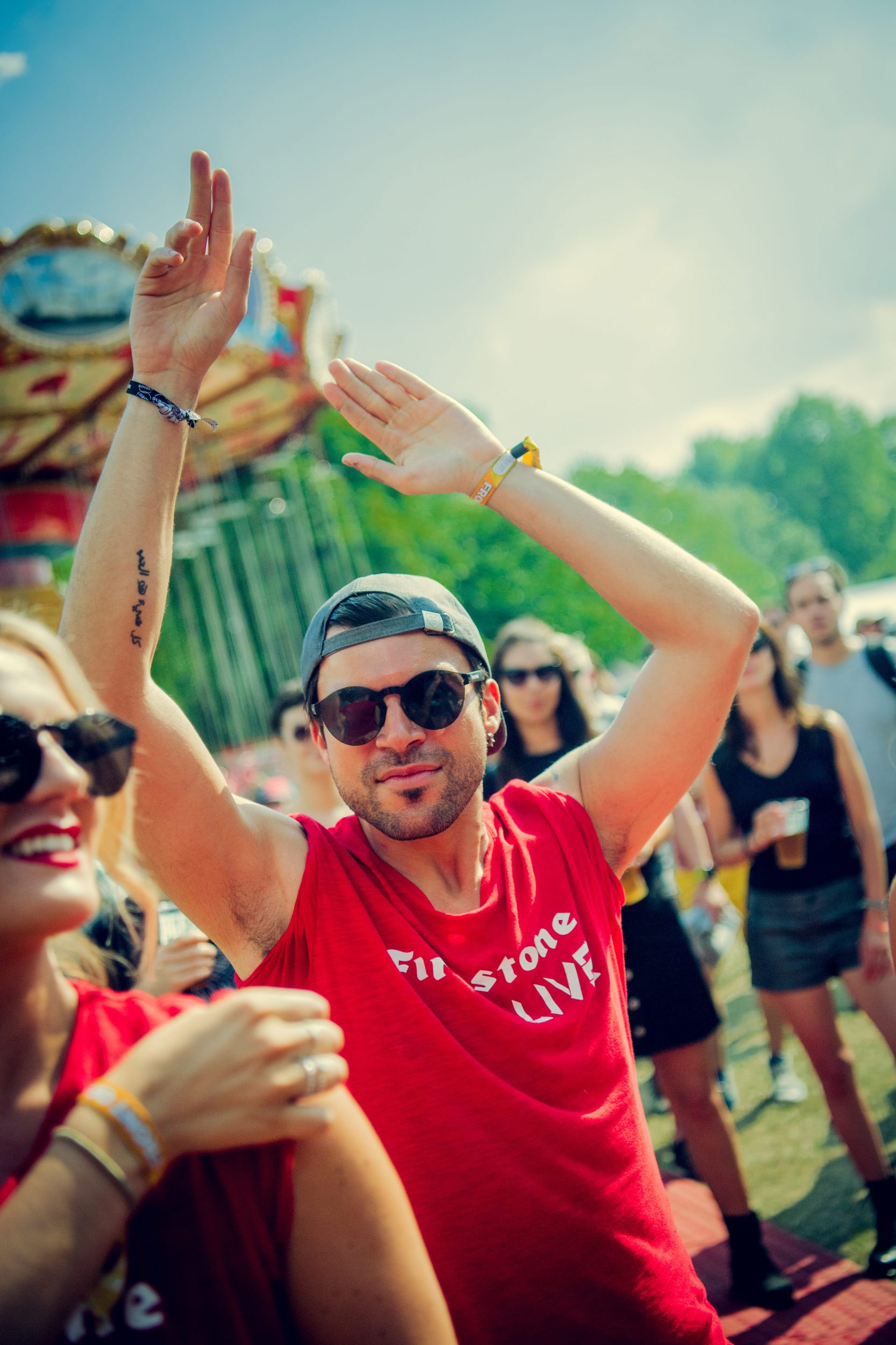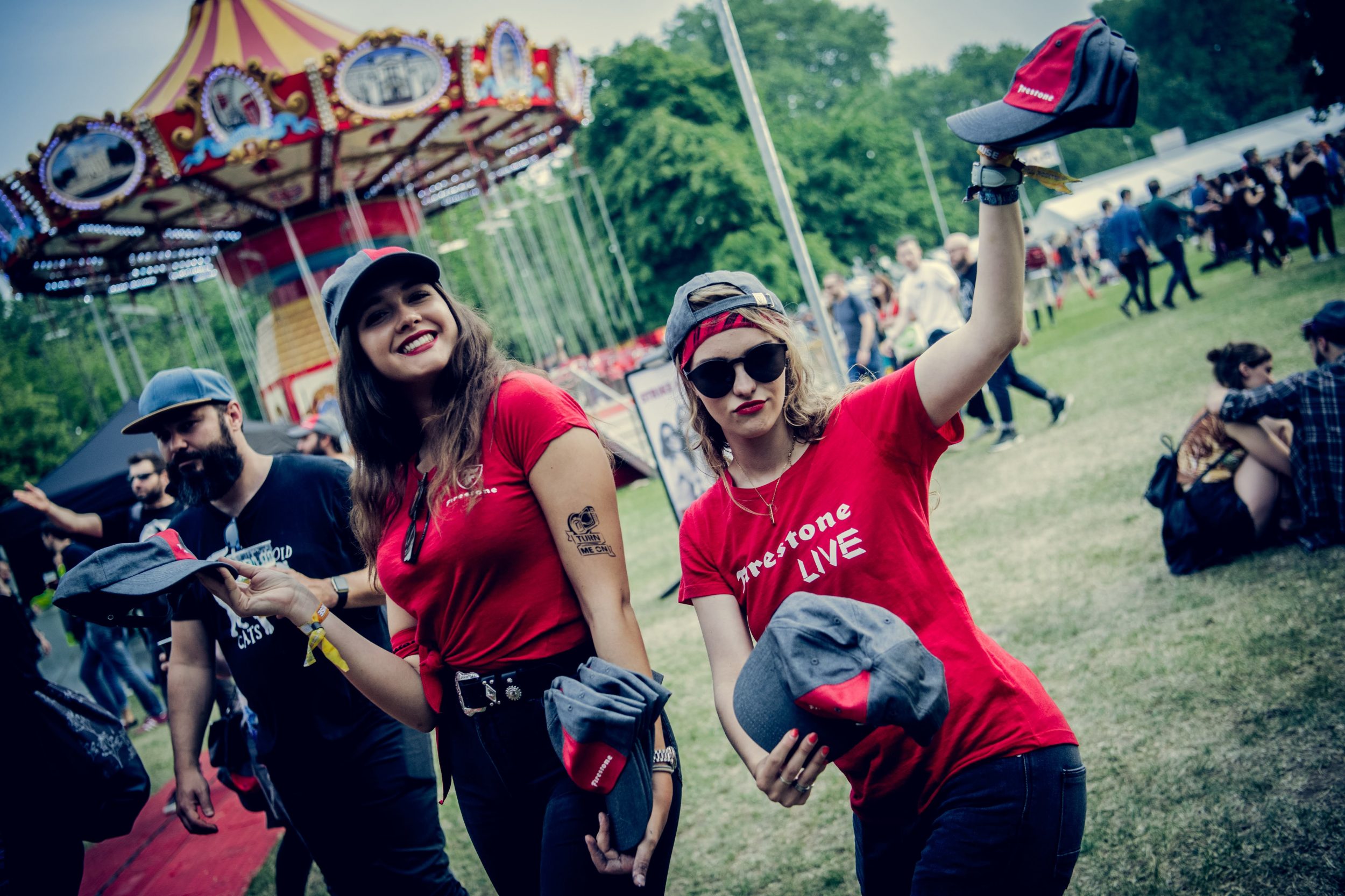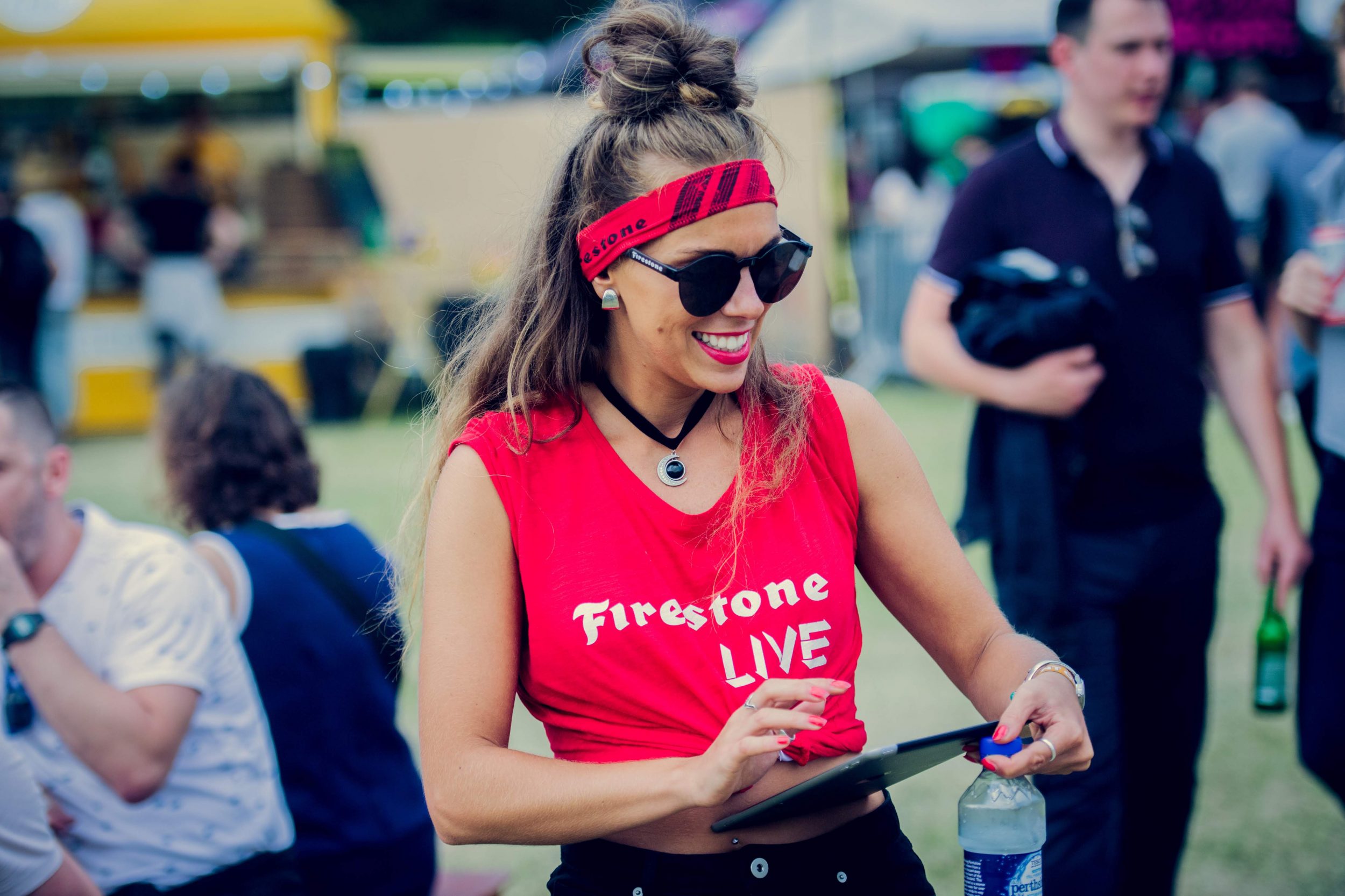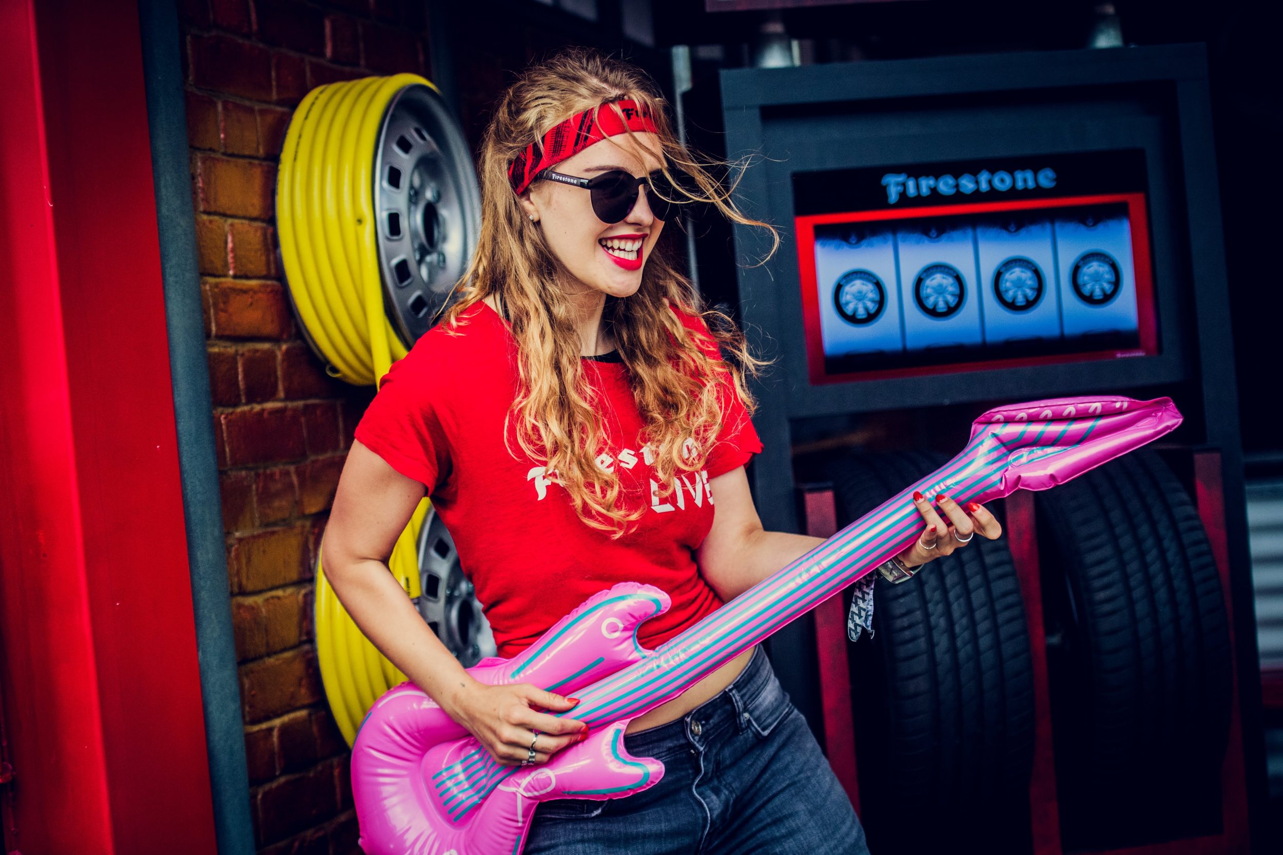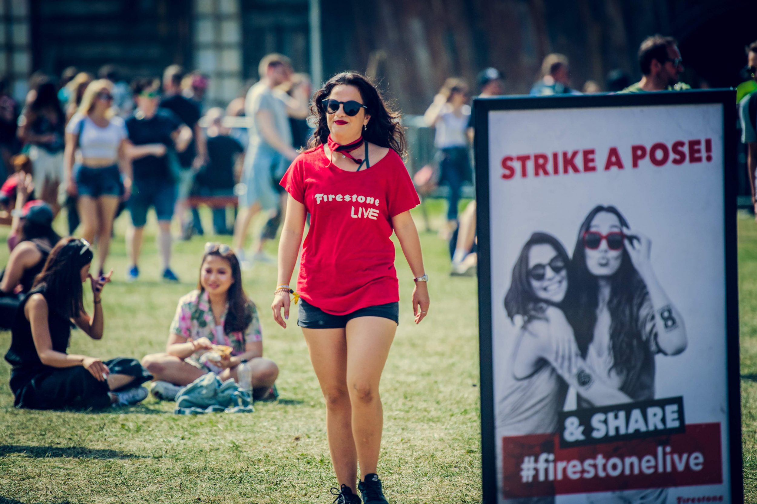 Firestone’s experiential marketing campaign included various activations across 10 days. Models encouraged festival attendees to play digital Spin the Tyre game and distribute branded merchandise. This included handing out Firestone branded hats and sunglasses by our festival brand ambassadors.