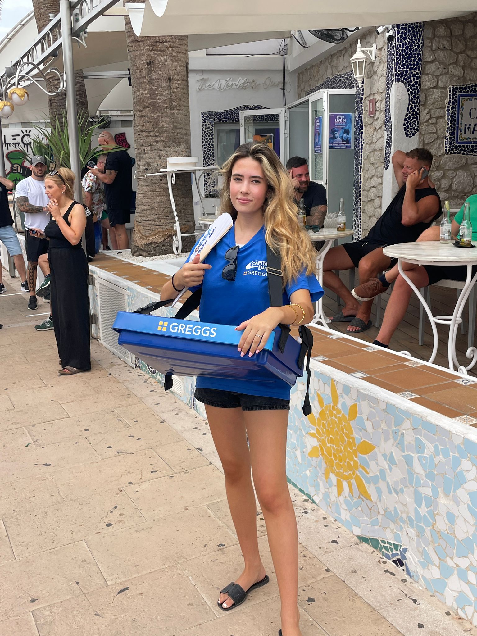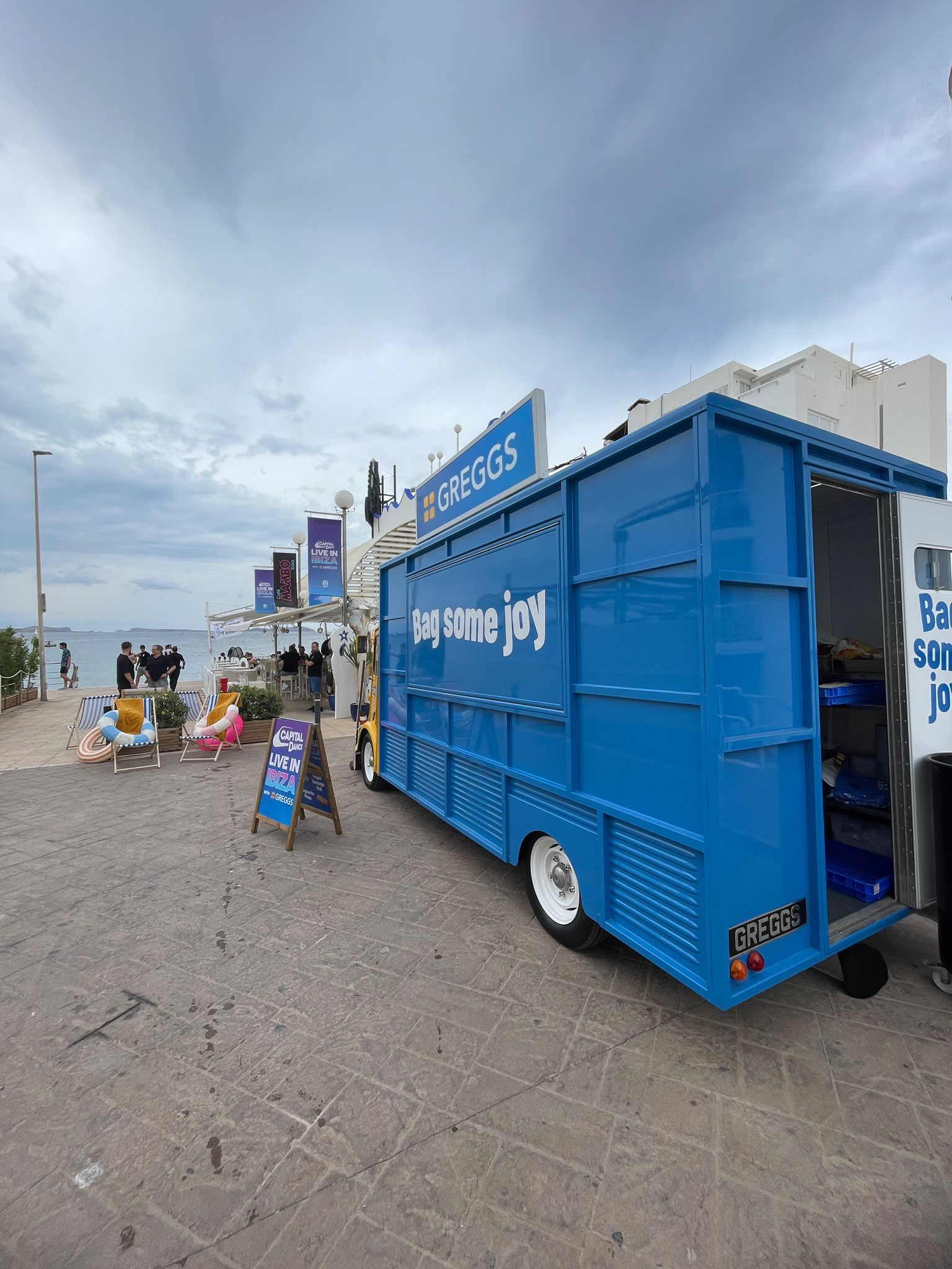 The Greggs Ibiza Promotional Campaign was a promotional event for Greggs – a British bakery chain famous for sausage rolls and pizza slices. A branded Greggs van gave out food to clubgoers whilst our promotional staff distributed the branded merchandise.