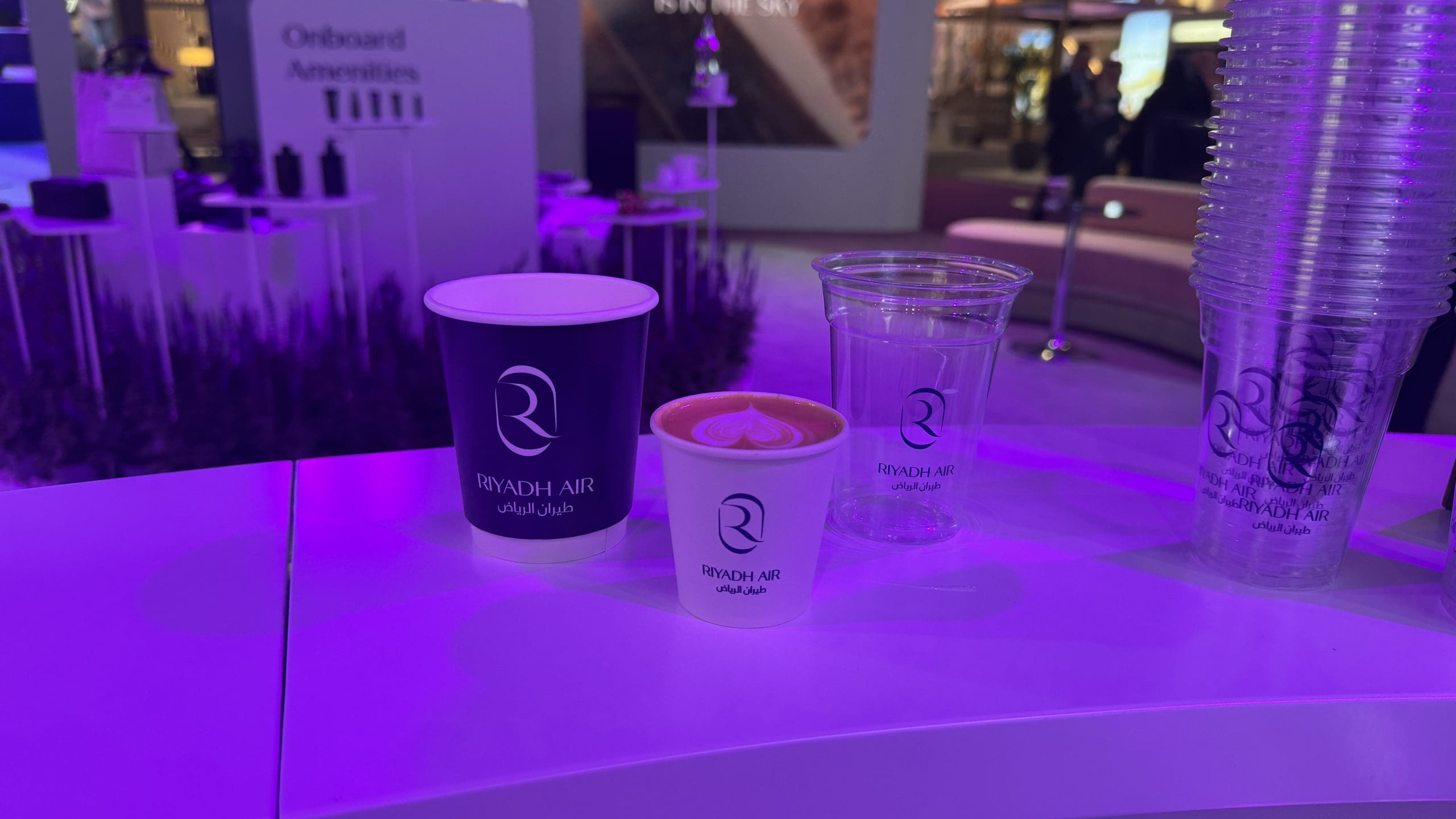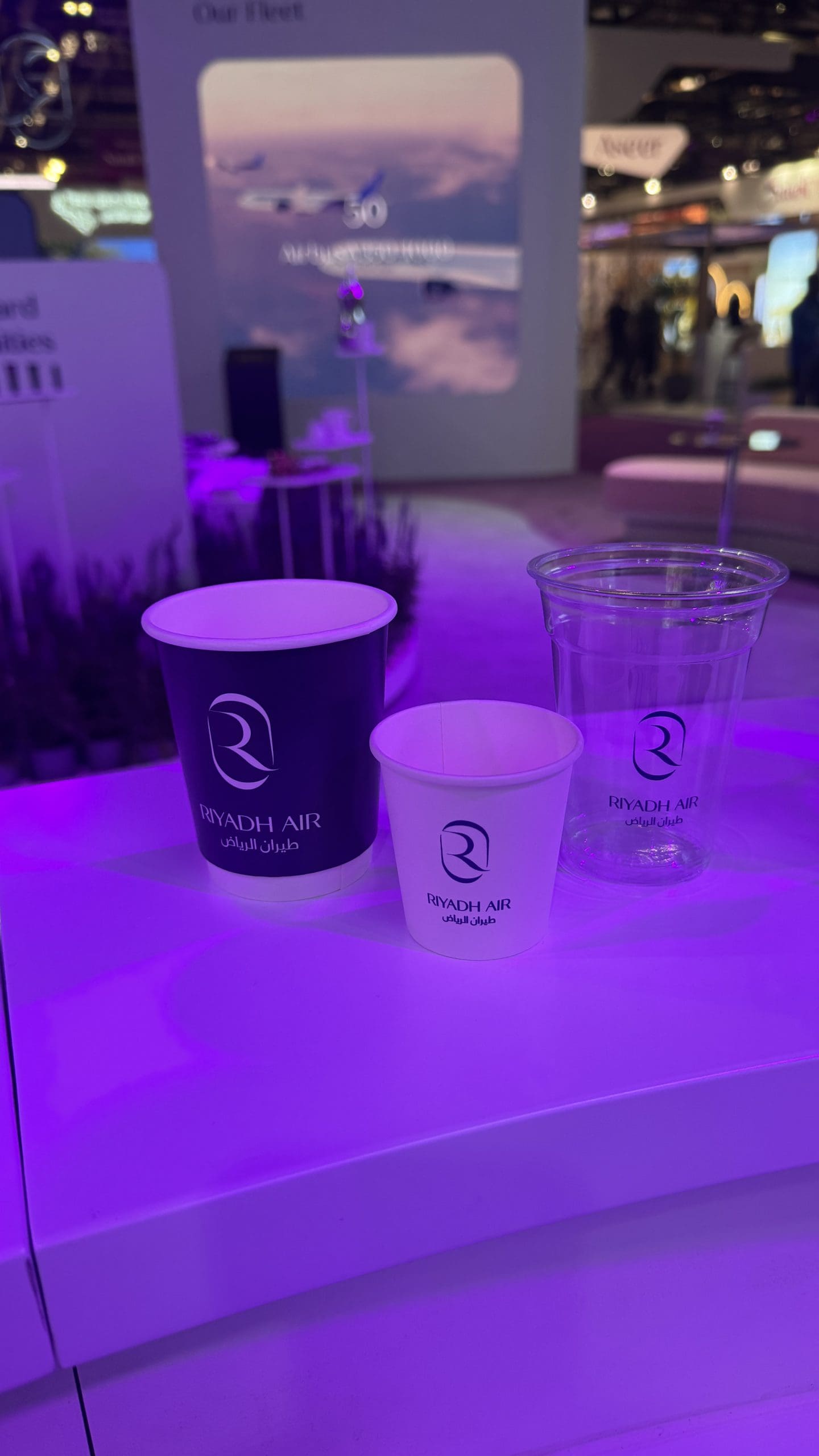 Working to tight timelines, Events Lab managed the full production and delivery of all branded consumables, including recyclable coffee cups, cocktail cups and branded uniforms for the hospitality team. All artwork, specifications, and pre-order visuals were prepared and approved in line with Riyadh Air’s brand guidelines. Alongside branded items, our team coordinated the bar and coffee service operations.